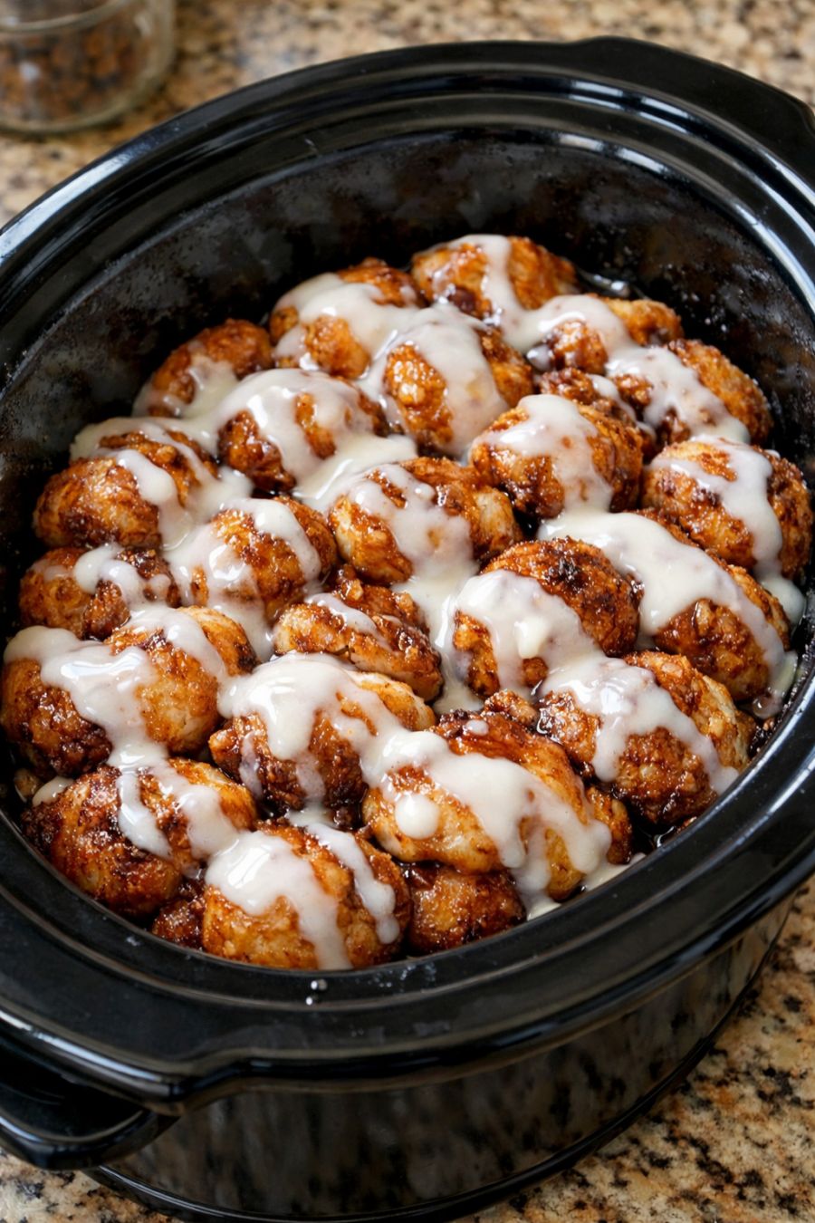 For picky eaters, you can dial back the cinnamon to 1 teaspoon and skip the nuts so the flavor is more like a soft brown sugar pull-apart bread. If your family loves extra cinnamon, sprinkle an additional 1/2 teaspoon over the top right after you drizzle the butter mixture. To make it a little lighter, you can use reduced-fat refrigerated biscuits and cut the brown sugar to 3/4 cup; the texture will still be soft and sticky, just a bit less rich. For a fun fall twist, stir 1/4 teaspoon ground nutmeg or pumpkin pie spice into the butter mixture and serve with sliced apples. Chocolate lovers can scatter 1/4 to 1/3 cup mini chocolate chips over the biscuit pieces before drizzling the mixture, though be aware they’ll melt into the sauce and make it extra gooey. If you need to keep it dairy-free, use plant-based butter and check that your biscuit dough is dairy-free, then skip the glaze or make it with a non-dairy milk. To prevent sogginess, avoid overfilling the slow cooker; if your slow cooker runs hot or you’re using a smaller size, check at the 2-hour mark and line the lid with a clean kitchen towel under the rim to catch condensation. Leftovers reheat nicely in the microwave in 15–20 second bursts; if you know you’ll have extra, store it in an airtight container and warm just what you need so the texture stays soft.