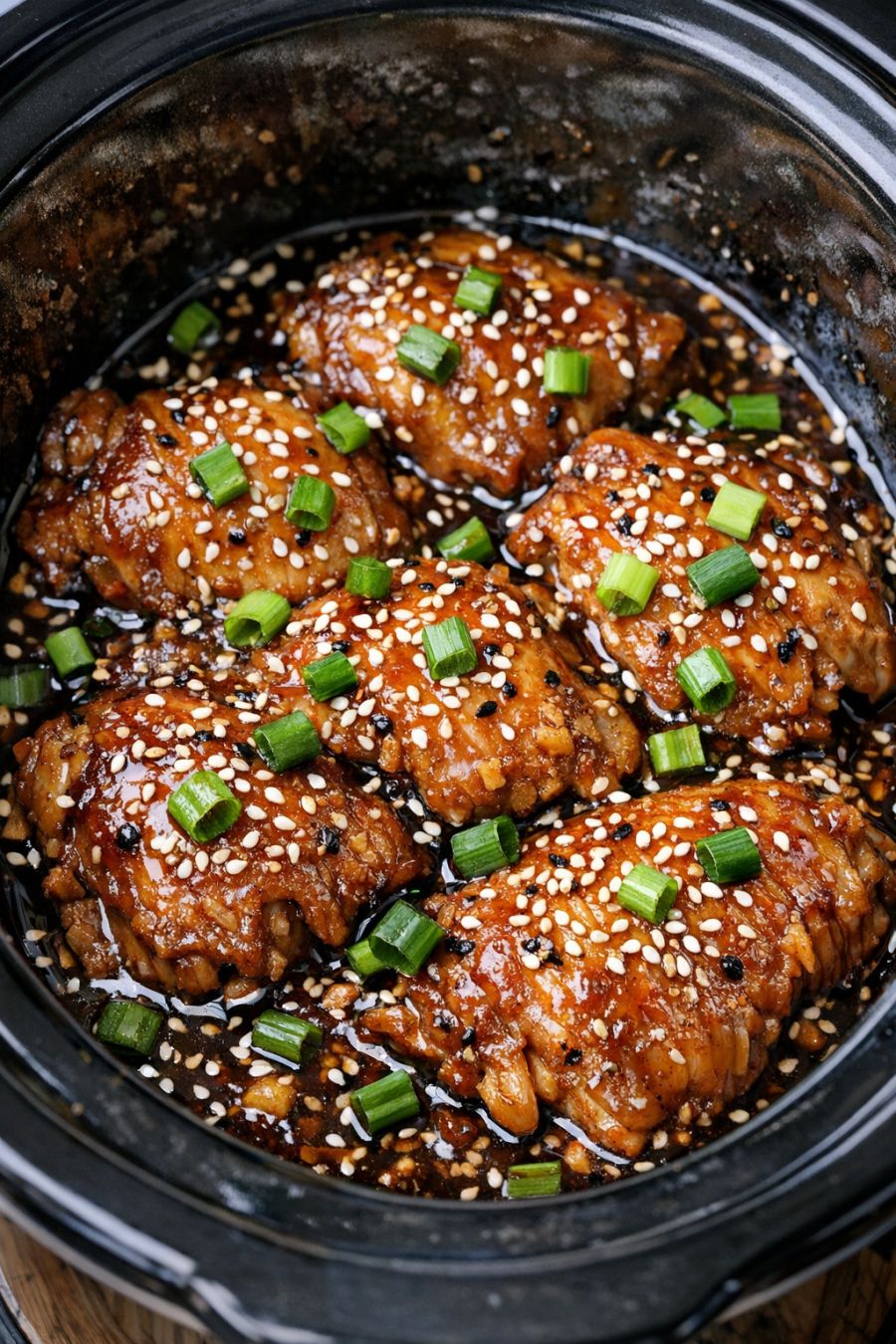 For a spicier version, whisk 1 to 2 teaspoons of sriracha or chili-garlic sauce into the teriyaki mixture before pouring it over the chicken. If you prefer a less sweet dish, reduce the honey to 1 tablespoon or omit it entirely and rely on the sweetness already present in your teriyaki sauce. You can also add vegetables directly to the slow cooker: layer sliced bell peppers, onion wedges, or carrot coins under and around the chicken so they soften in the sauce as it cooks. For a more pronounced sesame flavor, drizzle 1 to 2 teaspoons of toasted sesame oil into the sauce mixture, then garnish the finished dish with toasted sesame seeds. If you’re cooking for a smaller household, this recipe scales down easily—just keep the same proportions of sauce to chicken and watch the timing the first time you try a smaller batch. Leftovers reheat well and can be turned into teriyaki chicken lettuce wraps, stuffed into rice bowls with pickled vegetables, or used as a topping for simple fried rice.