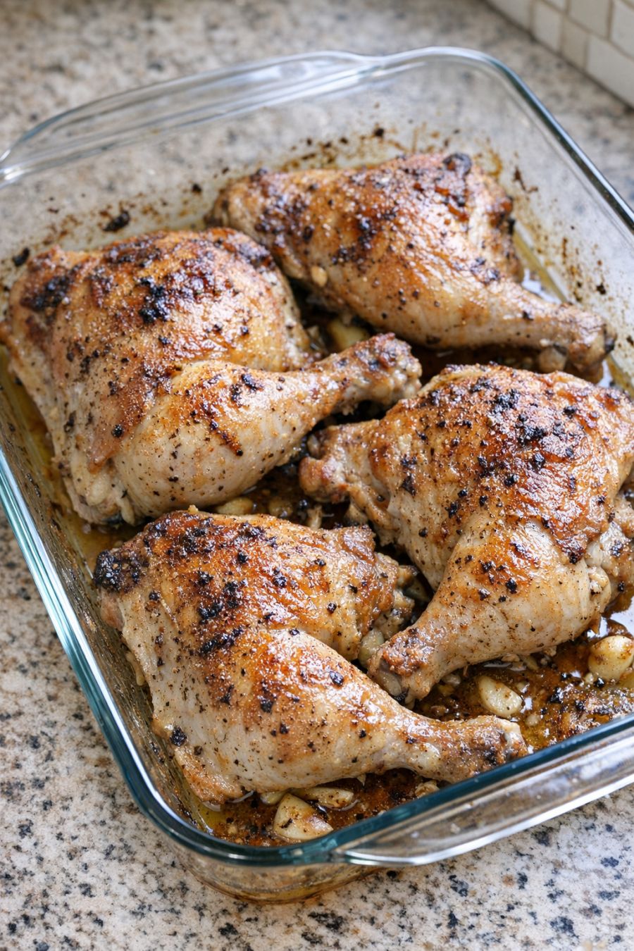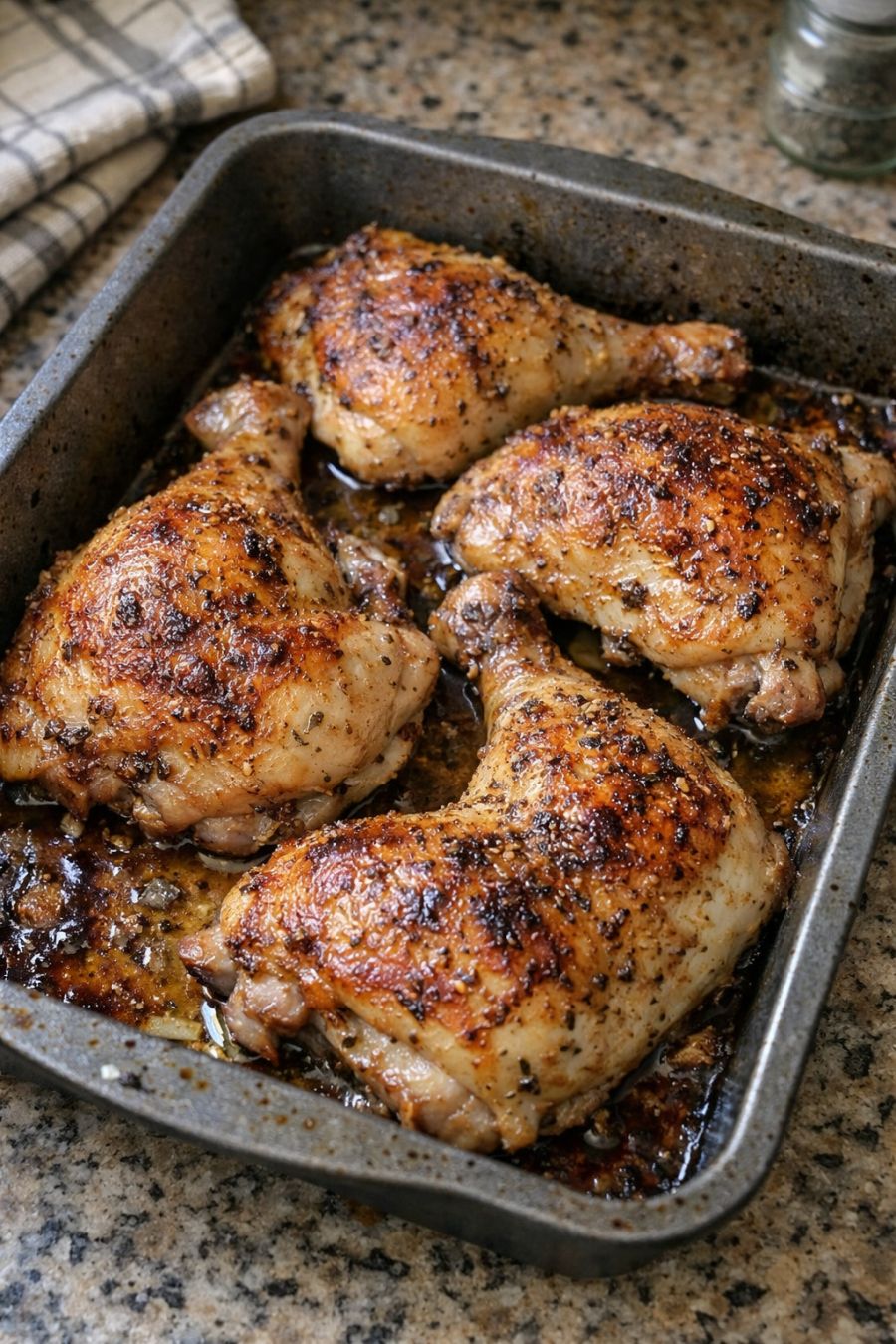 ![]() Print this recipe This simple southern baked chicken quarters recipe is the kind of cozy, no-fuss dinner that makes the whole house smell like home. It leans on the classic Southern idea that you don’t need a lot of fancy ingredients to make something deeply flavorful—just good seasoning, a little butter, and time in a hot oven. Chicken quarters are budget-friendly and stay wonderfully juicy, which makes this a great weeknight staple or an easy Sunday supper. It’s the kind of dish you can slide into the oven, help the kids with homework, and then bring to the table looking like you fussed all afternoon. These southern baked chicken quarters are lovely with simple, comforting sides. Think creamy mashed potatoes or buttered rice to soak up the pan juices, and a vegetable like green beans, steamed broccoli, or roasted carrots. A crisp side salad with a light vinaigrette helps balance the richness. If you want to lean all the way into the Southern feel, serve with cornbread or biscuits and a side of coleslaw. For busy nights, even a bagged salad and some quick stovetop mac and cheese will turn this into a family-pleasing meal without a lot of extra work. Advertisement Simple Southern 6-Ingredient Baked Chicken Quarters Servings: 4 servings ![]() Ingredients 4 chicken leg quarters (about 2 1/2–3 pounds total) 3 tablespoons melted butter (or vegetable oil) 1 1/2 teaspoons salt 1 teaspoon black pepper 1 1/2 teaspoons garlic powder 2 teaspoons paprika (regular or smoked) Directions Preheat your oven to 400°F (200°C). Line a baking sheet or shallow roasting pan with foil for easier cleanup, and lightly grease it or spray with nonstick spray. Pat the chicken leg quarters very dry with paper towels. This helps the skin crisp up in the oven. In a small bowl, stir together the salt, black pepper, garlic powder, and paprika until well combined. Brush the chicken quarters all over with the melted butter, making sure to get under the skin where you can without tearing it. Sprinkle the seasoning mixture evenly over both sides of the chicken, again tucking a little under the skin for extra flavor. Arrange the chicken quarters skin-side up on the prepared pan, leaving a little space between each piece so they roast instead of steam. Bake for 40–50 minutes, or until the skin is nicely browned and crisp and the internal temperature in the thickest part of the thigh reaches 165°F (74°C). If the skin isn’t as brown as you’d like, you can broil for 2–3 minutes at the end—just keep a close eye on it. Remove the chicken from the oven and let it rest for about 5–10 minutes before serving. This helps the juices settle so the meat stays moist when you cut into it. Spoon a little of the pan juices over the top when serving if you’d like. Advertisement Variations & Tips For kids who are sensitive to spice or strong flavors, you can cut the black pepper in half and use sweet paprika instead of smoked. If you have a little extra time, rub the seasoning and butter on the chicken in the morning and let it sit covered in the fridge all day—the flavor will soak in more deeply. For a slightly sweeter Southern twist, add 1 teaspoon of brown sugar to the seasoning mix; it helps the skin caramelize beautifully. If your family loves herbs, sprinkle dried thyme or Italian seasoning over the chicken before baking (this will add an extra ingredient, but it’s a nice option if your pantry allows). To make cleanup even easier, bake the chicken on top of a bed of thick onion slices or carrot chunks; they’ll soak up the drippings and turn into a simple side. Leftovers reheat well in the oven at 350°F, loosely covered with foil—perfect to shred over salads, tuck into wraps, or serve with quick microwave rice on an especially busy night |