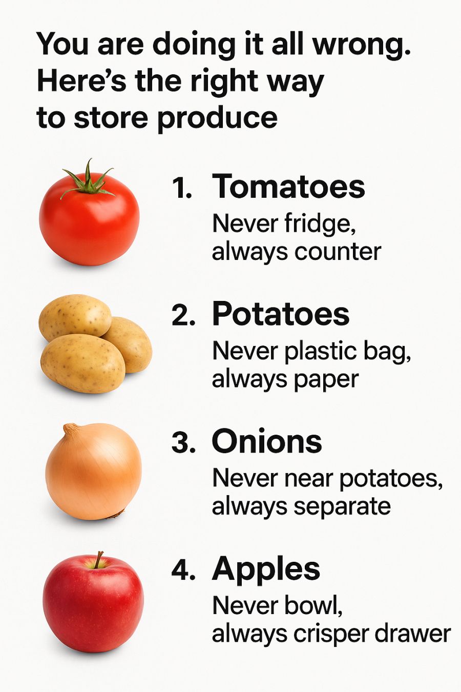 ![]() Like to see more from Tips for the Home Print this recipe When it comes to storing produce, many of us are guilty of simply tossing everything into the refrigerator without much thought. While this might seem like a convenient approach, it can actually shorten the lifespan of your fruits and vegetables, as well as affect their taste and nutritional value. To make the most of your fresh produce, it's important to understand that different types of fruits and vegetables have specific storage needs. By following proper storage techniques, you can extend the shelf life of your produce, reduce waste, and enjoy fresher flavors. In this article, we'll explore the best ways to store common produce items, ensuring they stay fresh and delicious for as long as possible. From tomatoes to fresh herbs, we'll cover all the essentials you need to know. Advertisement 1. The Best Way to Store Tomatoes: Countertops Over Fridges Tomatoes are one of the most commonly misunderstood produce items when it comes to storage. Many people instinctively place them in the refrigerator, thinking it will prolong their freshness. However, refrigeration can cause tomatoes to lose their flavor and develop a mealy texture. Instead, store your tomatoes on the countertop, ideally in a single layer to prevent bruising. Room temperature is perfect for tomatoes, which allows them to maintain their flavor and ripen evenly. If you've purchased tomatoes that are not yet fully ripe, placing them stem-side down on the countertop can help them ripen more uniformly. Once they reach the desired ripeness, consume them within a few days for the best taste and texture. 2. Potatoes Done Right: Paper Bags Over Plastic Potatoes are best stored in a cool, dark, and well-ventilated area. It's important to keep them away from light, which can cause them to turn green and develop solanine, a toxic compound. Instead of using plastic bags, which can trap moisture and lead to spoilage, opt for paper bags or a cardboard box to store your potatoes. Ensure the storage area is around 45-50°F (7-10°C), which is slightly warmer than a refrigerator but cooler than room temperature. A pantry or a cellar can be ideal places for storing potatoes. Check them regularly, and remove any that show signs of sprouting or spoilage to prevent the spread to the rest of the batch. 3. Keeping Onions and Potatoes Separate: A Must for Freshness Onions and potatoes are both staple ingredients in many kitchens, but storing them together can lead to early spoilage. Onions release gases and moisture that can cause potatoes to sprout and spoil more quickly. To keep both vegetables fresh for longer, store them separately. Onions do well in a cool, dry, and well-ventilated space, much like potatoes, but they should be kept in mesh bags or baskets that allow air circulation. Keeping them apart not only extends their shelf life but also helps maintain their flavors. 4. The Ideal Spot for Apples: Crisper Drawers Over Bowls Apples are one of the few fruits that truly benefit from being stored in the refrigerator. The crisper drawer is the perfect spot, as it helps maintain the right humidity level to keep apples fresh and crisp. Before storing, remove any apples with bruises or blemishes, as these can cause others to spoil more quickly. If you prefer to keep your apples at room temperature, be aware that they will ripen much faster. In a bowl on the countertop, apples will last about a week, but in the refrigerator, they can remain fresh for several weeks. 5. Leafy Greens: How to Keep Them Crisp and Fresh Leafy greens like lettuce, spinach, and kale are prone to wilting and losing their crispness if not stored properly. To keep them fresh, first rinse the greens thoroughly and then dry them completely using a salad spinner or paper towels. Excess moisture can lead to spoilage. Once dried, wrap the greens in a dry paper towel and store them in a breathable container or perforated plastic bag in the refrigerator's crisper drawer. This method helps maintain the right balance of moisture and airflow, keeping your greens fresh for up to a week. 6. Berries and Their Fragile Nature: The Right Way to Store Berries are delicate fruits that require careful storage to prevent spoilage. Before storing, sort through them and remove any that are moldy or damaged, as they can quickly affect the rest. Avoid washing berries until right before consumption, as moisture can accelerate mold growth. Store berries in the refrigerator in a single layer on a paper towel-lined tray or container. This setup helps absorb excess moisture and allows air circulation. Some people find that placing a fresh paper towel on top of the berries can also help extend their freshness. 7. Citrus Fruits: Should They Be Refrigerated? Citrus fruits like oranges, lemons, and limes can be stored at room temperature if you plan to consume them within a week. For longer storage, refrigeration is recommended. The crisper drawer works well, as it helps maintain the right humidity and temperature. To prevent them from drying out, you can store citrus fruits in a mesh bag or in the produce drawer without any covering. If you find that the skin is starting to dry, consider placing them in a sealed plastic bag to retain moisture. 8. Bananas: The Right Time and Place for Ripening Bananas are unique in that they continue to ripen after being picked. To ripen bananas, store them at room temperature, away from direct sunlight, ideally hanging from a banana hook to prevent bruising. If you want to slow down the ripening process, once they reach the desired ripeness, move them to the refrigerator. In the fridge, the skin may turn brown, but the fruit inside will remain fresh for a few more days. If bananas become overripe, consider peeling and freezing them for use in smoothies or baking. 9. Avocados: From Firm to Perfectly Ripe Avocados are often bought firm and need some time at room temperature to ripen. Place them in a paper bag w