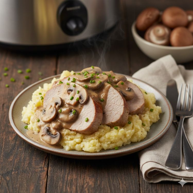 You literally nestle a whole pork tenderloin into the slow cooker, cover it with mushrooms and a simple creamy sauce, then walk away. By the time dinner rolls around, the meat is so tender you barely need a knife, and the rich mushroom sauce tastes like something you’d get at a cozy bistro.