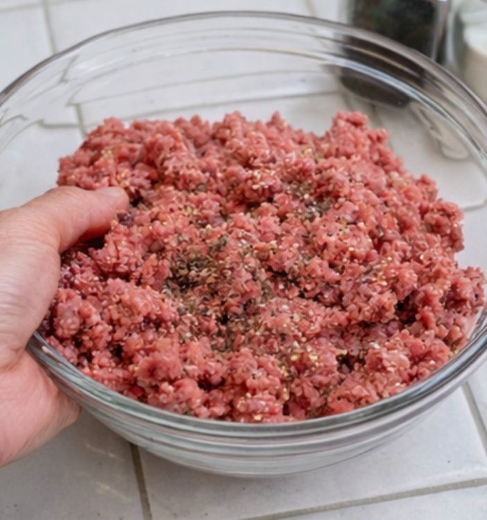 Divide the ground beef into 4 equal portions and shape each portion into a flat, even patty about 1/2 to 3/4 inch thick. This thickness helps the patties cook through while staying tender.