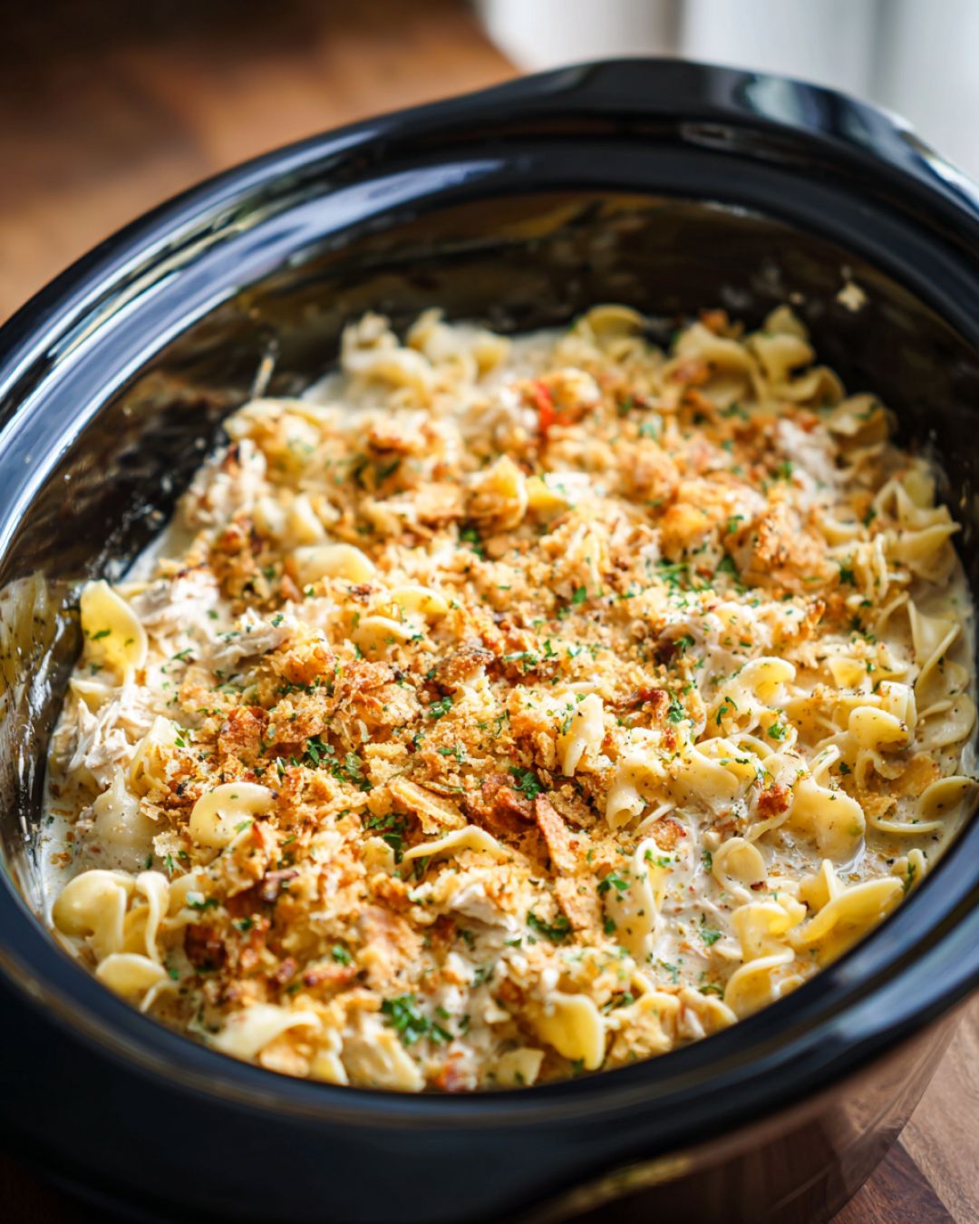 Cover the slow cooker with the lid and cook on LOW for 2.5 to 3.5 hours, stirring once about halfway through if you’re home. Cook just until the noodles are tender but not mushy. (Slow cookers can vary, so start checking around the 2.5-hour mark.)