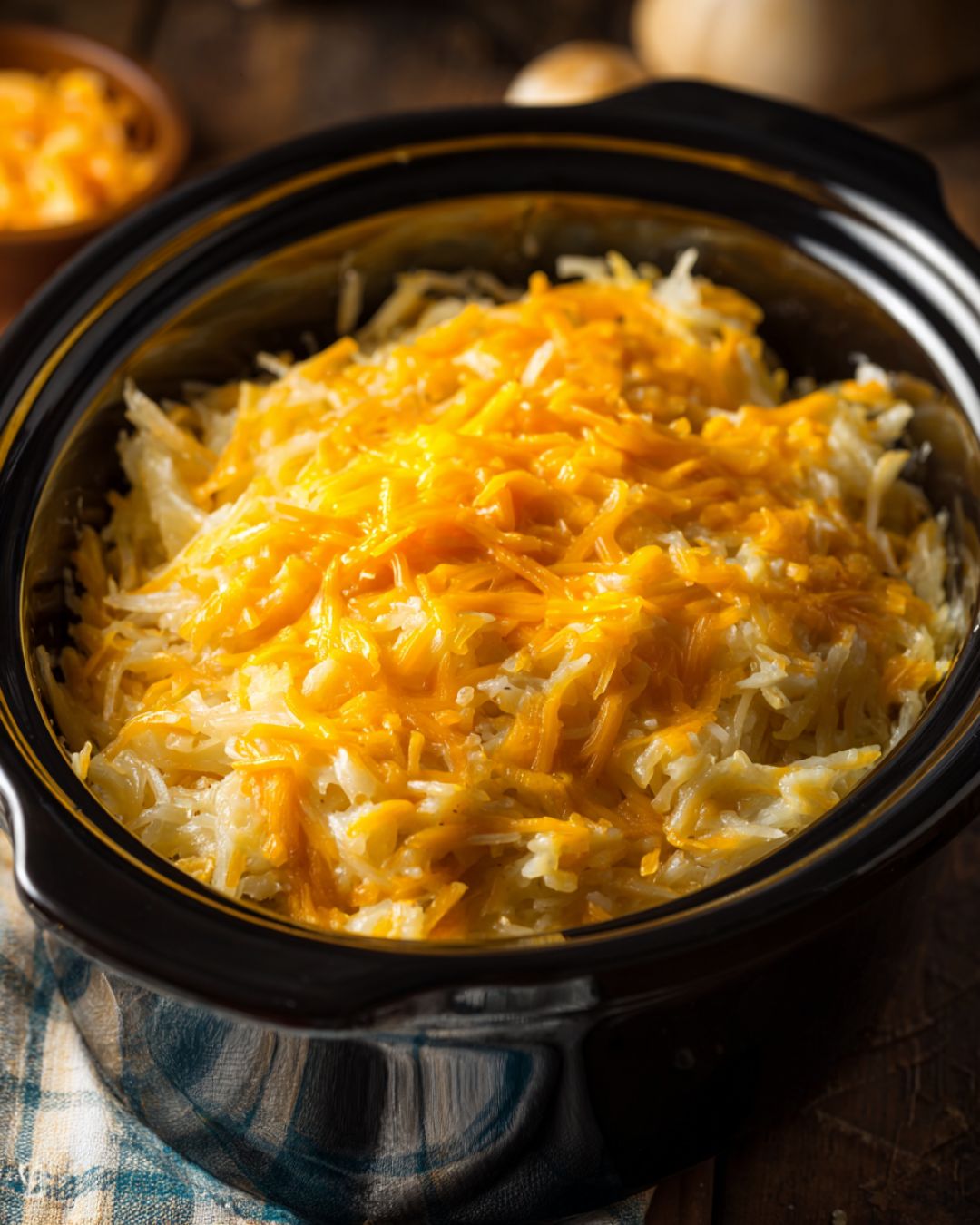 You can nudge this simple casserole in a few different directions without losing its easy charm. For a little extra flavor, you can stir in a teaspoon of garlic powder or onion powder, or a good grind of black pepper—those are pantry staples in most farm kitchens and won’t complicate things. If you’d like more texture, brown some diced ham or cooked crumbled bacon in a skillet and fold it into the potato mixture before it goes into the slow cooker; it turns the dish into more of a complete breakfast or hearty side for supper. Using a sharp cheddar will give a more pronounced cheese flavor, while a mild cheddar keeps it mellow and kid-friendly. You can also swap the cream of chicken soup for cream of mushroom or cream of celery if that’s what you have on hand, or if you’re serving vegetarians. To make the top a bit more festive for holidays, transfer the finished casserole to a baking dish, add extra cheese, and slide it under the broiler for a few minutes to get a golden, bubbly crust. Leftovers reheat nicely in the oven or microwave; if they seem a bit thick the next day, a spoonful of milk stirred in before reheating will bring the creaminess right back.