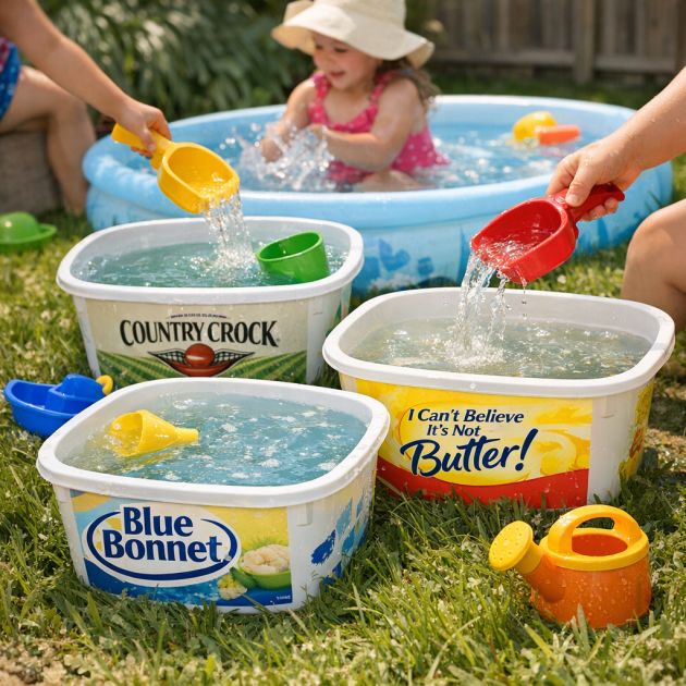 For a fun and educational activity, use butter tubs to create sensory bins for young children. Fill the tubs with different materials like rice, beans, or sand, and let kids explore textures and practice fine motor skills.